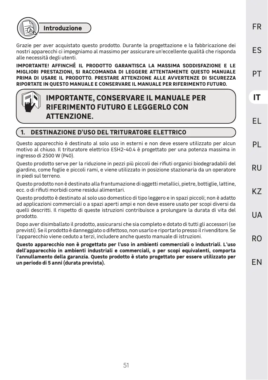 ESH2-40.4 - Broyeur de végétaux STERWINS - Manuale utente e istruzioni gratuiti
