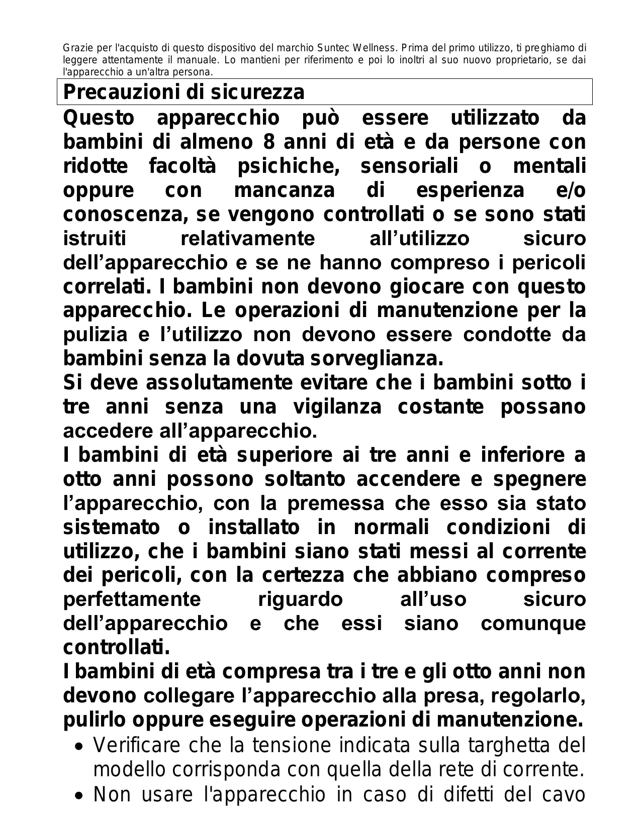 Cet appareil peut être utilisé par des enfants à partir de 8 ans et plus, ainsi que par des personnes ayant des capacités physiques, sensorielles ou mentales réduites, ou ayant un manque d'expérience ou de connaissance, à condition qu'ils soient surveillés ou qu'ils soient dûment instruits pour ce qui concerne l’utilisation de l’appareil et qu'ils aient compris les dangers qui en résultent. Les enfants ne doivent pas jouer avec l'appareil. Le nettoyage et l'entretien utilisateur ne doivent pas être réalisés par des enfants sans surveillance. Les enfants âgés de moins de 3 ans sans surveillance ne doivent pas pouvoir accéder à l'appareil. Les enfants âgés de 3 à 8 ans sont autorisés à démarrer et arrêter l'appareil uniquement si l’appareil est placé ou installé dans sa position d'utilisation normale, s'ils ont reçu des consignes concernant l’utilisation de l’appareil en toute sécurité, s’ils sont surveillés et s’ils ont compris les dangers potentiels. Les enfants âgés de 3 à 8 ans ne doivent pas brancher l’appareil, le régler, le nettoyer ou effectuer l’entretien.