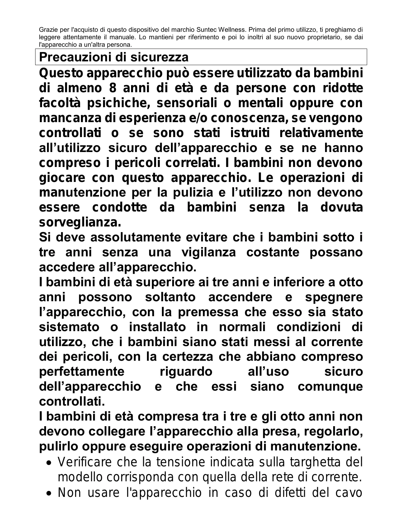 En caso de que necesite asistencia técnica, péngase en contacto con su distribuidor especializado. Denominacién del producto: Nümero de serie: Nombre del comprador: Fecha de compra: Sello y firma del distribuidor especializado: Fabricante: Nous nous engageons de remettre en état votre appareil gratuitement pendant la période de garantie de 24 mois ou alors de mettre à disposition les pièces détachées gratuitement à votre commerçant spécialisé, si votre appareil devait défaillir en raison d'une erreur de fabrication ou d’un vice de matériel côté production. Toute revendication à notre encontre allant au-delà est exclue. Nous n'assumons pas de responsabilité pour des endommagements dans des cas de force majeure, en cas de manipulation incorrecte, en cas de non-respect de la notice, en cas d'usure due au fonctionnement ou pour des dommages survenus sur le chemin du transport. Ce certificat est uniquement valable avec la facture correspondante. En cas d'intervention de service, veuillez ramener le produit acheté à votre commerçant spécialisé. Désignation de l’article : Numéro de série : Nom de l'acheteur : Date de l’achat : Cachet et signature du commerçant spécialisé : Fabricant : Suntec Wellness GmbH HolzstraRe 2