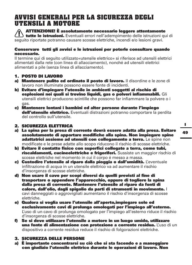 e) Lorsqu'on utilise un outil à l'extérieur, utiliser un prolongateur adapté