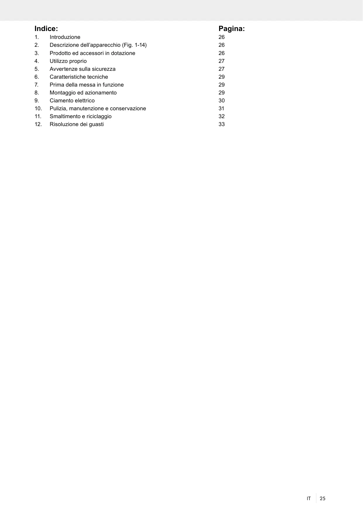Remplissez la nouvelle huile dans l'orifice de rem- plissage d'huile (19) jusqu'à ce que le niveau d'huile maximal de remplissage soit atteint. Celui-ci est mar- qué d’un point rouge sur le verreregard de l'huile (12) (Fig. 11). Ne dépassez pas la quantité maximale de remplissage. Un surremplissage peut entraîner un dommage de l'appareil. Introduisez à nouveau le bouchon de fermeture de l'huile (15) dans l'orifice de remplissage d'huile (19).