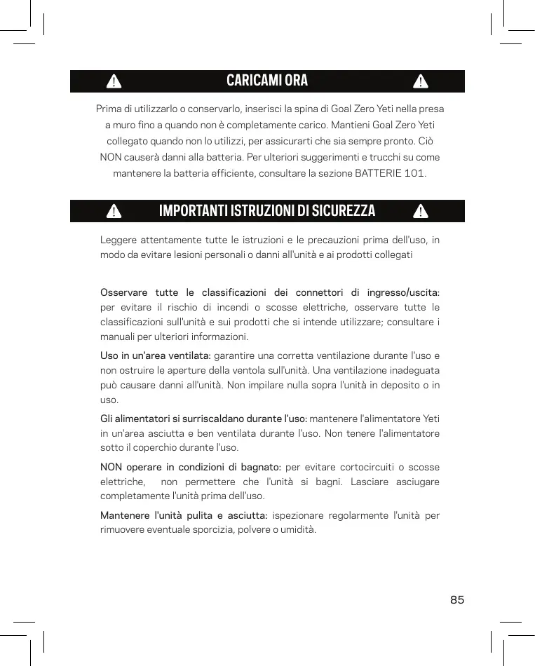 MANUALE UTENTE YETI 1500X GOAL ZERO