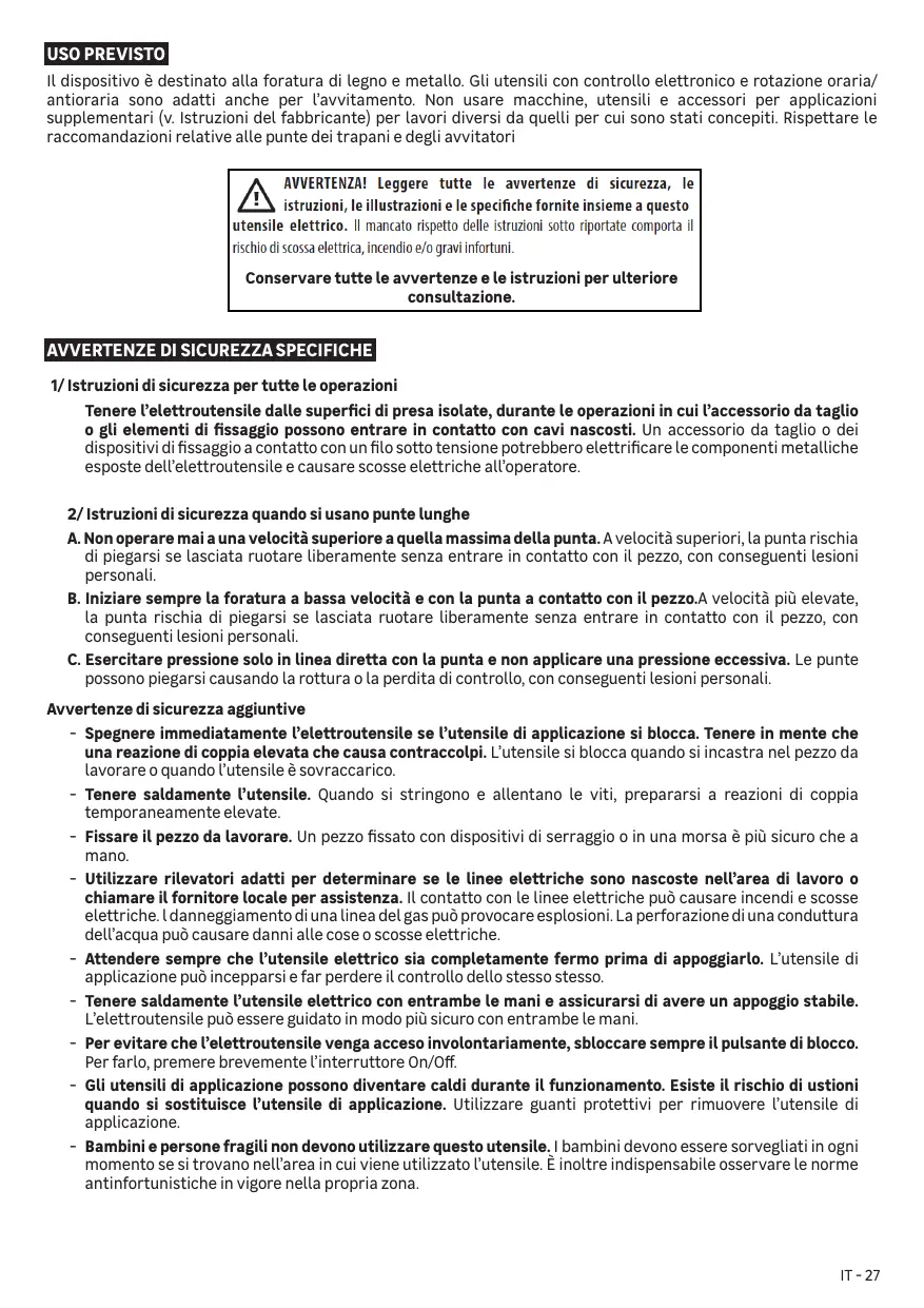 2/ Instructions de sécurité pour l’utilisation de forets longs