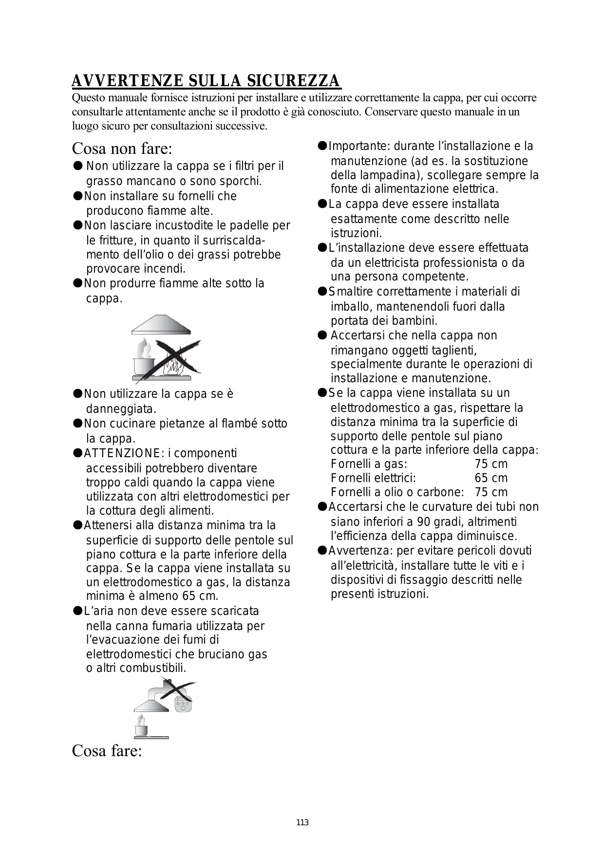@Quand la hotte aspirante et les appareils alimentés par autre chose que de l'électricité fonctionnent simultanément, la pression négative à l'intérieur de la pièce ne doit pas dépasser 4 Pa (4 x 10-5 bar).