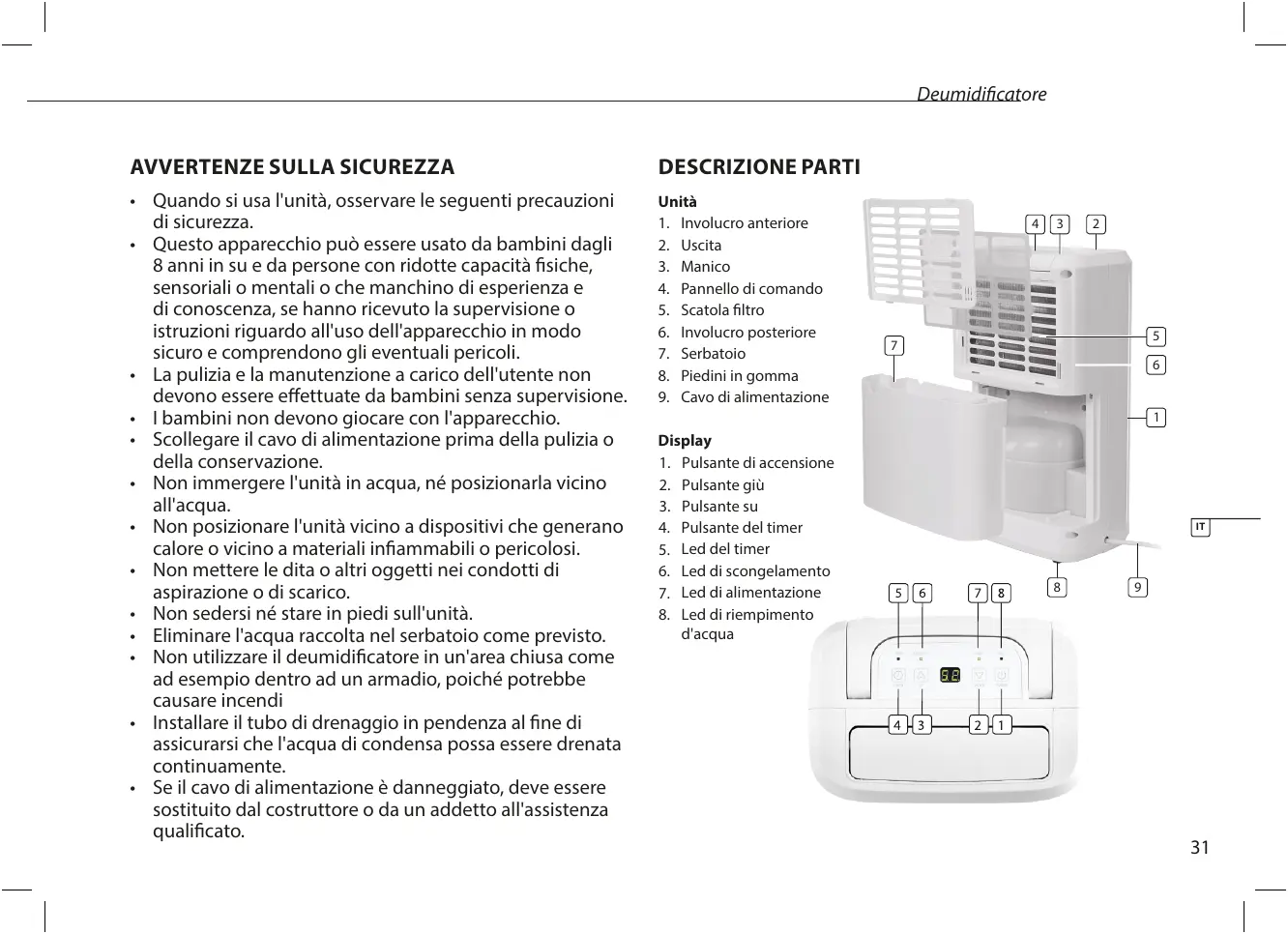 + _ Noutilice el deshumidificador en un lugar cerrado, como dentro de un armario, ya que puede causar un incendio