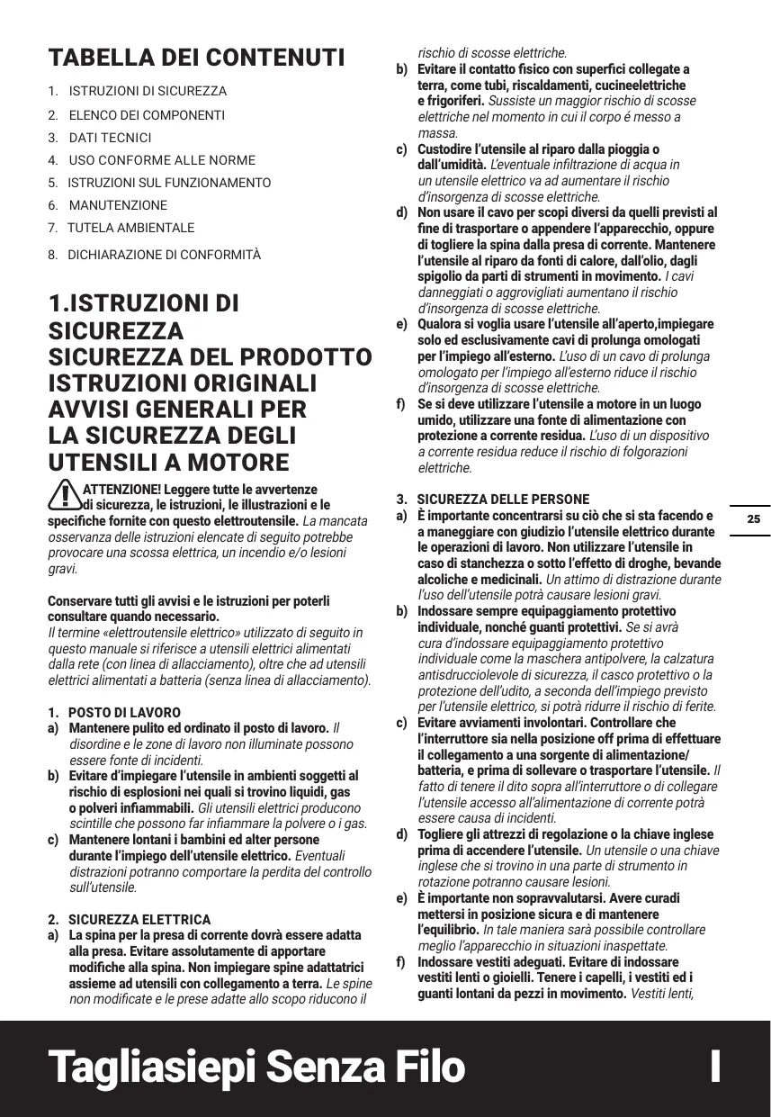 4.UTILISATION CONFORME L'appareil est conçu pour découper et tailler des haies et des buissons dans des jardins domestiques et de plaisance.