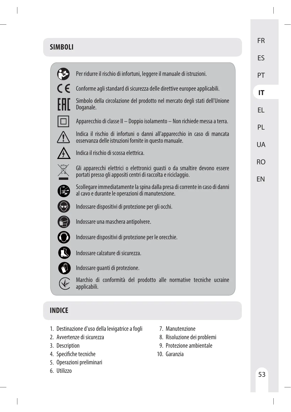 manuel d'utilisation (avec 1 manuel de sécurité et 1 carte de garantie)