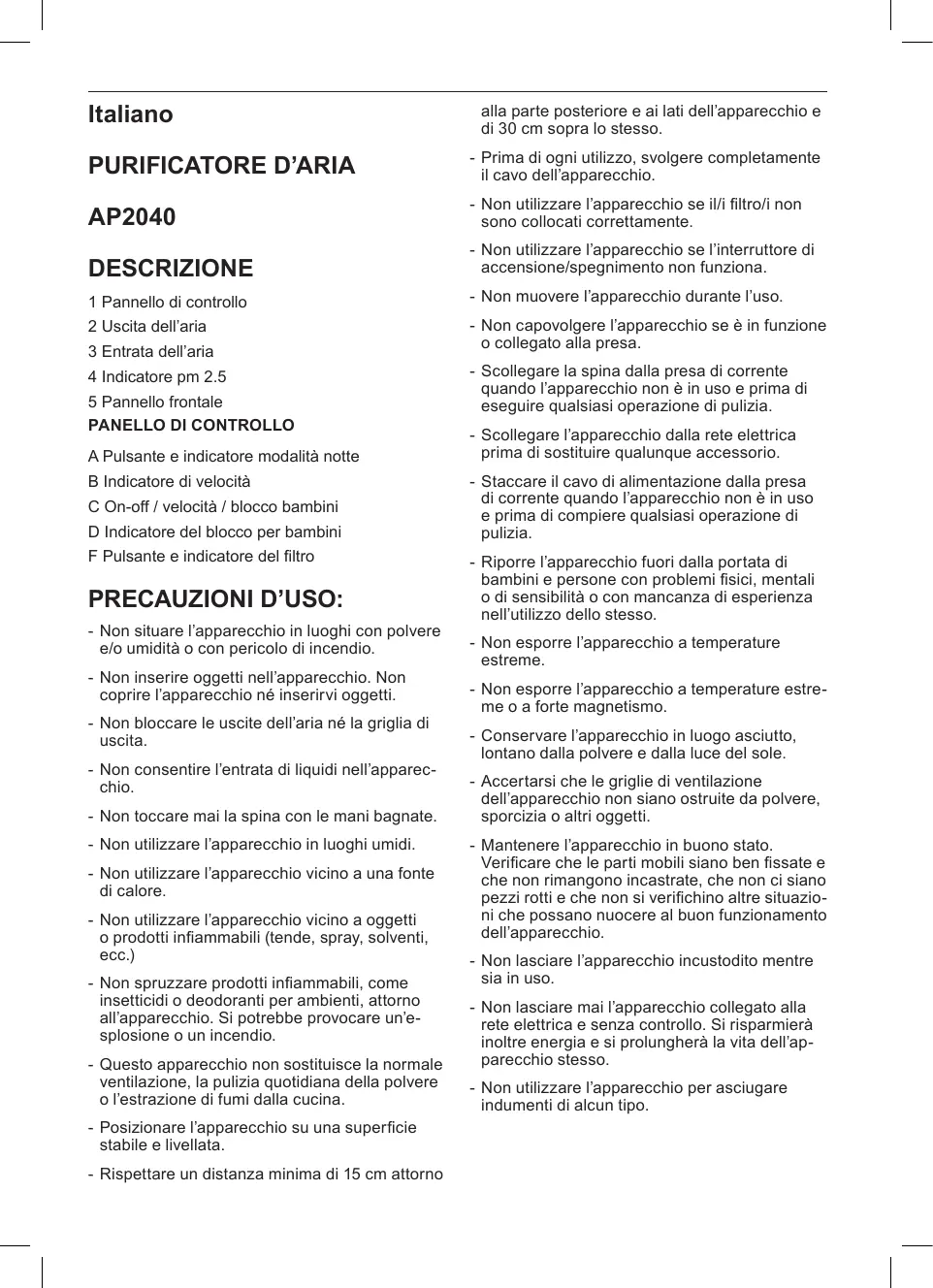 AP2040 - Purificatore d'aria TAURUS - Manuale utente e istruzioni gratuiti