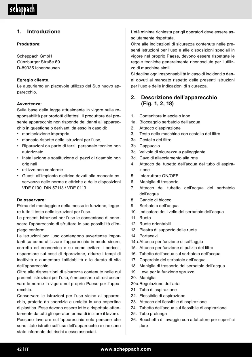 MANUALE UTENTE SPRAYVAC20 SCHEPPACH