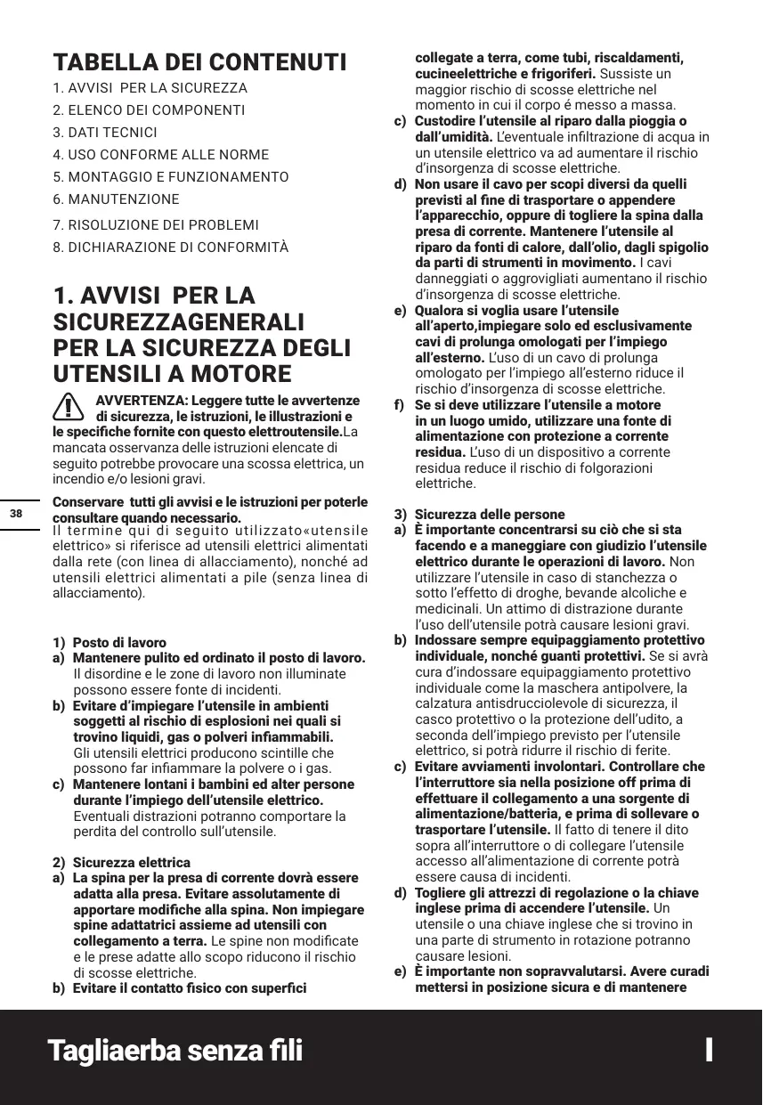 Scarica le istruzioni per il tuo Decespugliatori in formato PDF gratuitamente! Trova il tuo manuale WG173E - WG173E.X - WORX e riprendi in mano il tuo dispositivo elettronico. In questa pagina sono pubblicati tutti i documenti necessari per l'utilizzo del tuo dispositivo. WG173E - WG173E.X del marchio WORX.