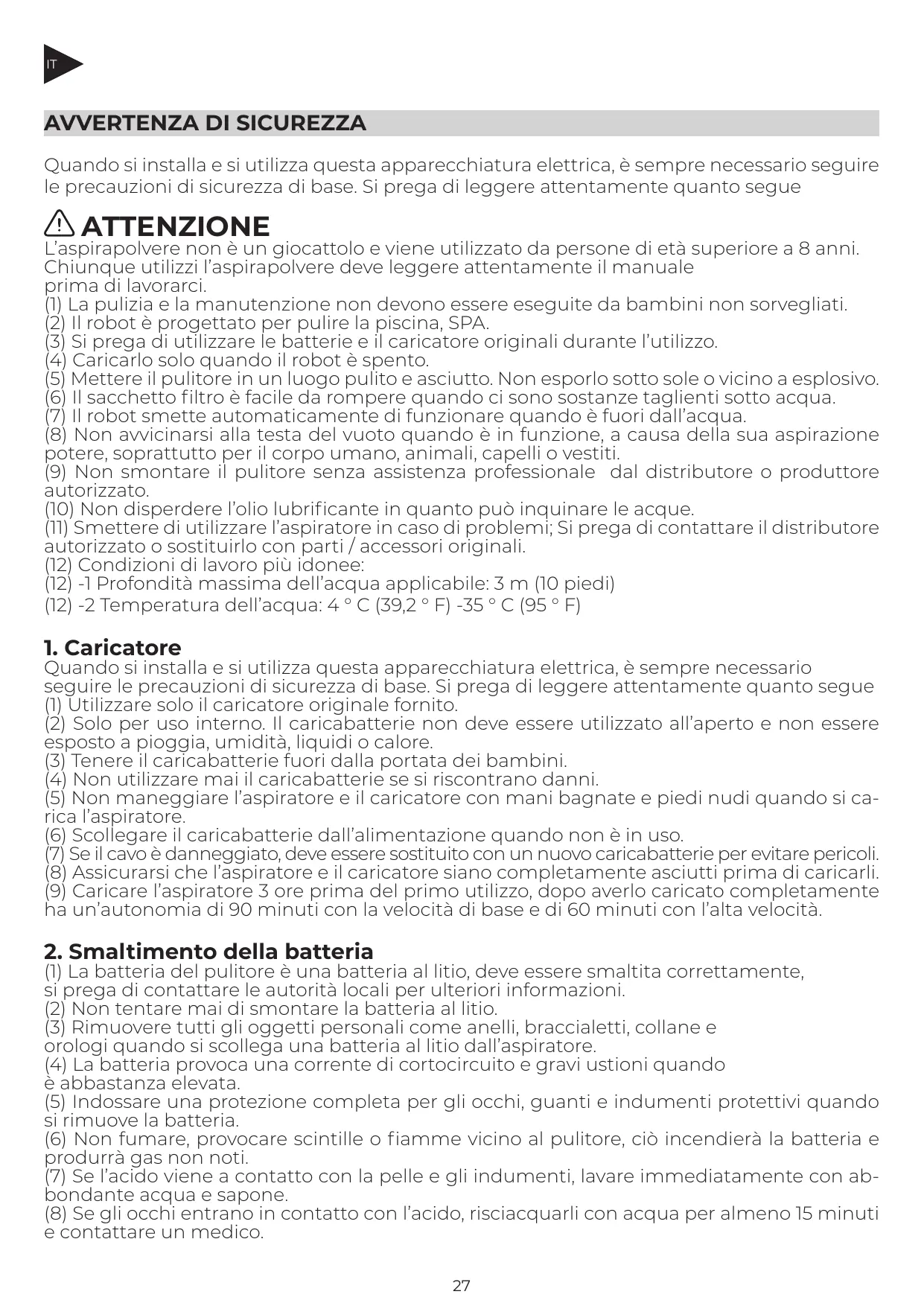 rie. Avertissement : n'allu- mez pas le nettoyeur et ne remplacez pas la batterie vous-même. Vous risqueriez de souffrir des blessures graves ou mortelles et la ga- rantie ne serait plus valable.