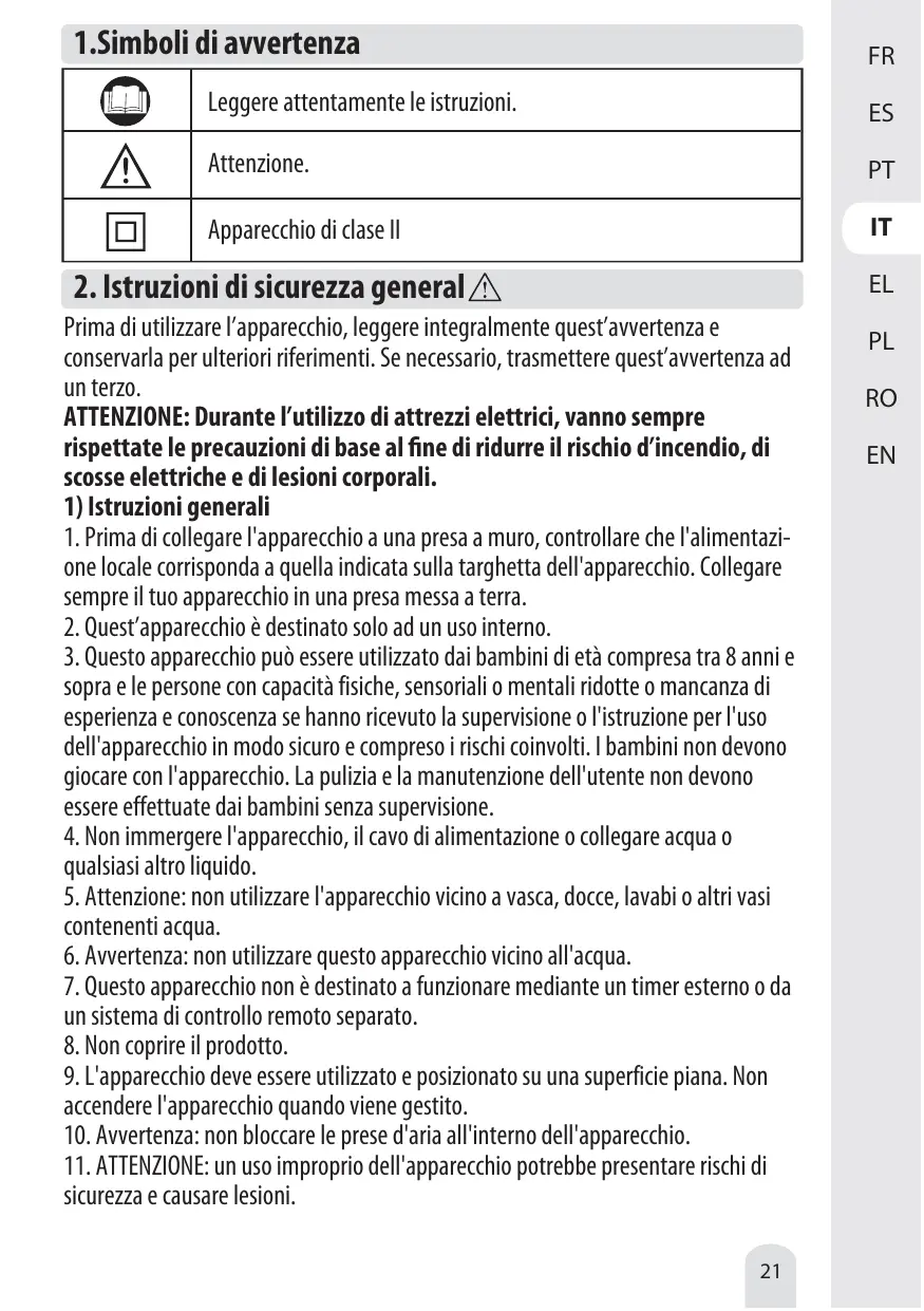 2.Cet appareil est uniquement destiné à un usage domestique. Aucun autre usage (par exemple professionnel) n'est autorisé.