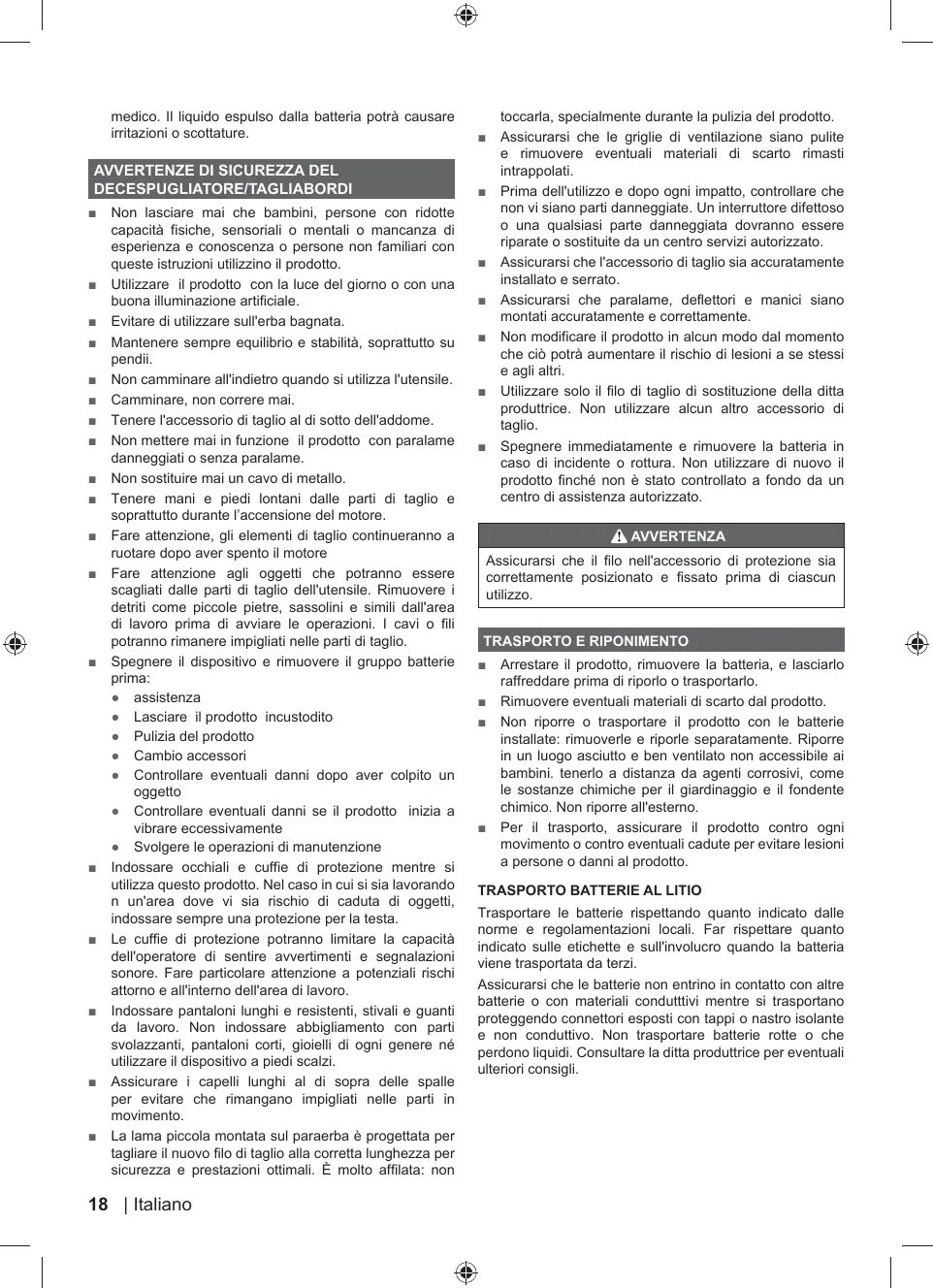 MANUALE UTENTE RLT1825M13 RLT1825M20 RLT1825MLL13 OLT1825M RYOBI