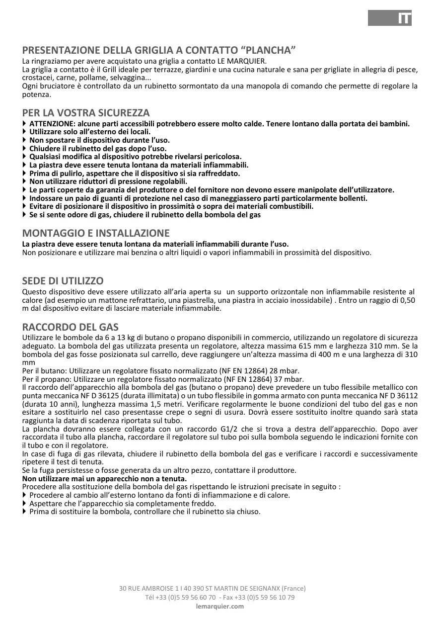 La ringraziamo per avere acquistato una griglia a contatto LE MARQUIER.