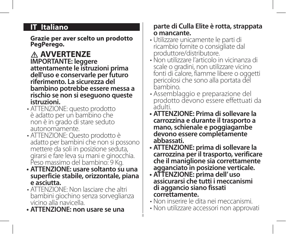CULLA ELITE - Passeggini PEG PEREGO - Manuale utente e istruzioni gratuiti