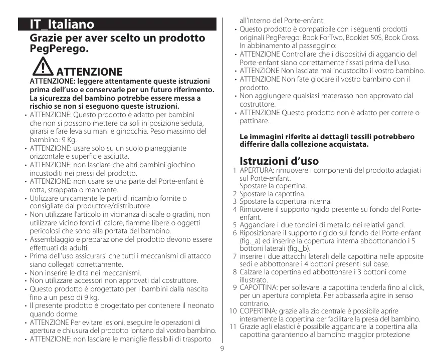 Porte-enfant - Passeggini PEG PEREGO - Manuale utente e istruzioni gratuiti
