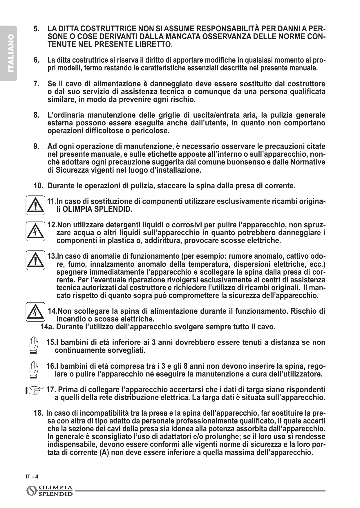 11.En cas de remplacement de composants, utiliser exclusivement des pièces de rechange originales OLIMPIA SPLENDID.