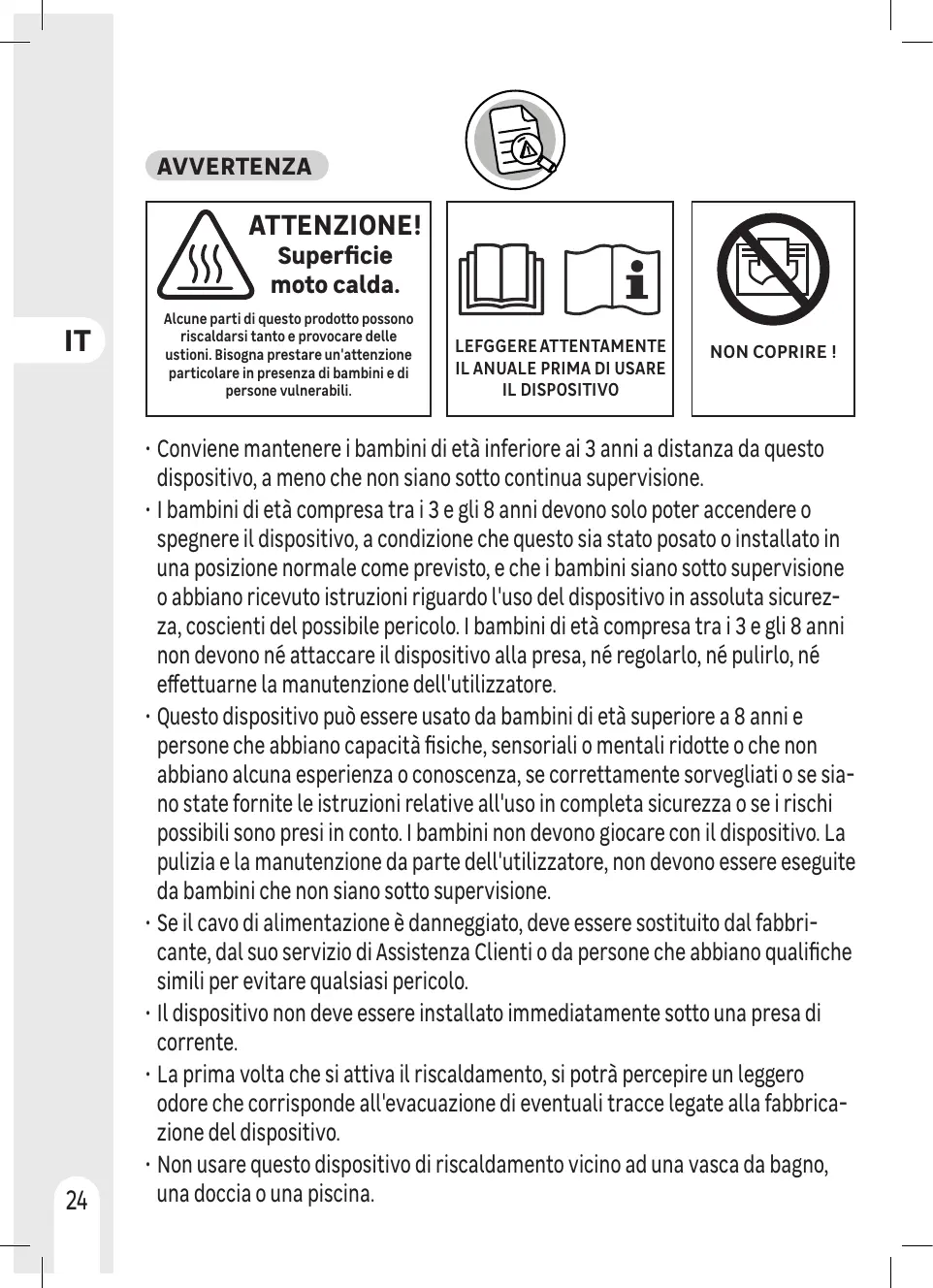 riscaldarsi tanto e provocare delle ustioni. Bisogna prestare un'attenzione | | EFGGEREATTENTAMENTE| | NON COPRIRE ! particolare in presenza di bambini e di IL ANUALE PRIMA DI USARE