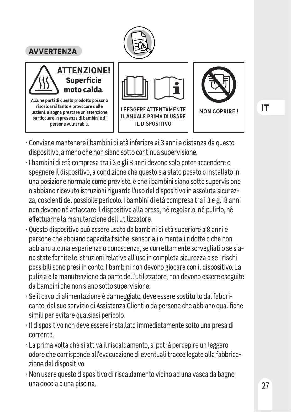 + ILconvient de maintenir à distance de cet appareil Les enfants de moins de 3 ans, à moins qu'ils ne soient sous une surveillance continue.