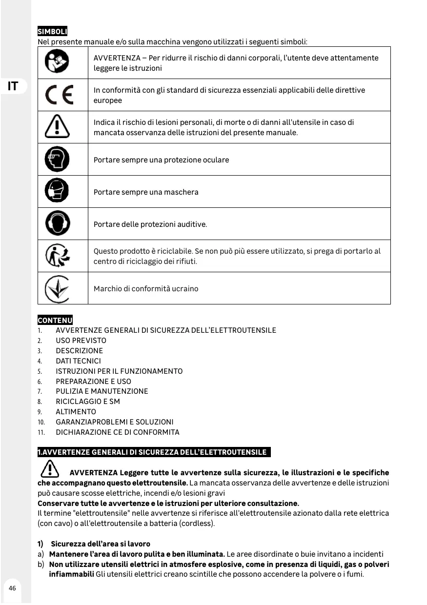 2. UTILISATION PRÉVUE Le produit est destiné à la rectific tion de métaux sans utiliser d'eau. Cette machine est utilisée pour polir Les outils de coupe ; Les fers à rabot, Le burin, les gouges, les outils de tournage, les forets, etc. Ce produit n'est pas destiné à un usage commercial et ne doit pas être utilisé pour les roues métalliques brossées.