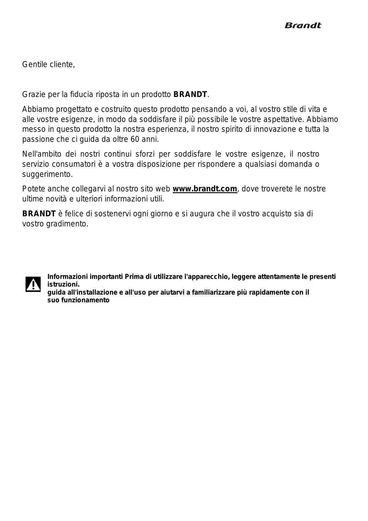 Grazie per la fiducia riposta in un prodotto BRANDT.
