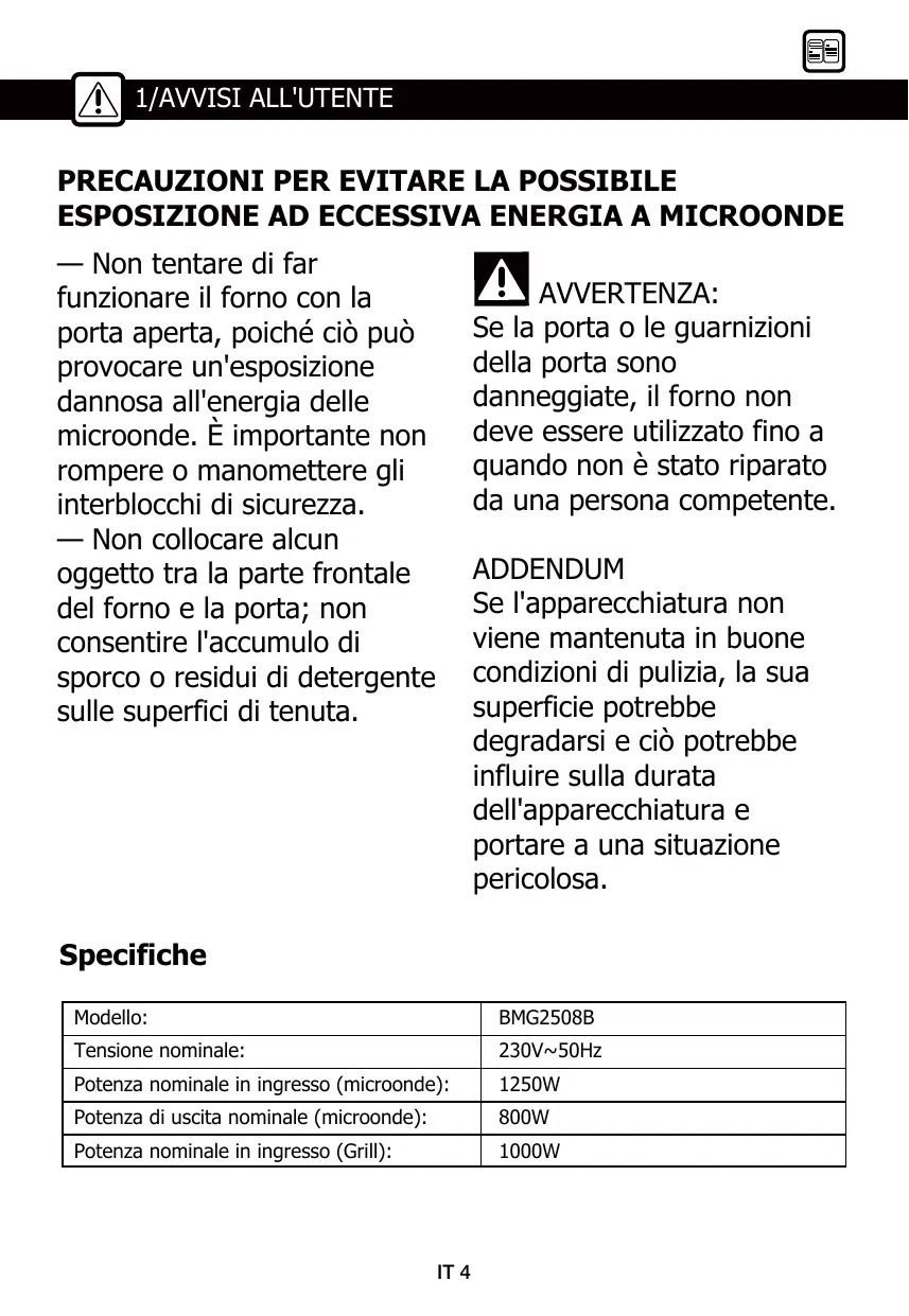 Scarica le istruzioni per il tuo Microonde in formato PDF gratuitamente! Trova il tuo manuale BMG2508B - BRANDT e riprendi in mano il tuo dispositivo elettronico. In questa pagina sono pubblicati tutti i documenti necessari per l'utilizzo del tuo dispositivo. BMG2508B del marchio BRANDT.
