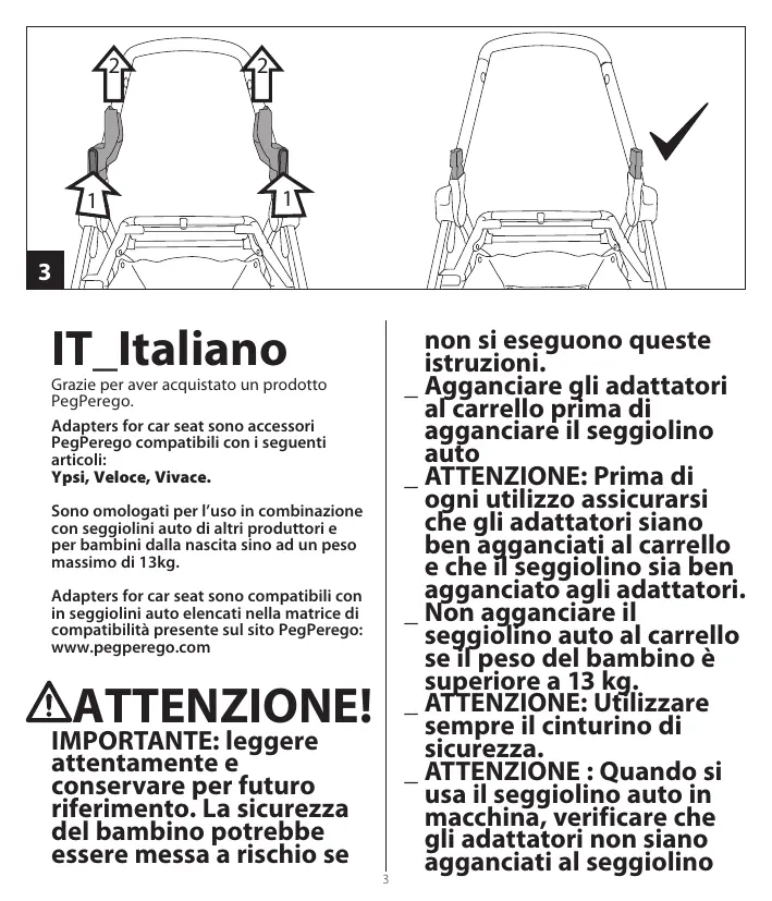 Trova gratuitamente il manuale del dispositivo Adapters for Car Seat PEG PEREGO in formato PDF.