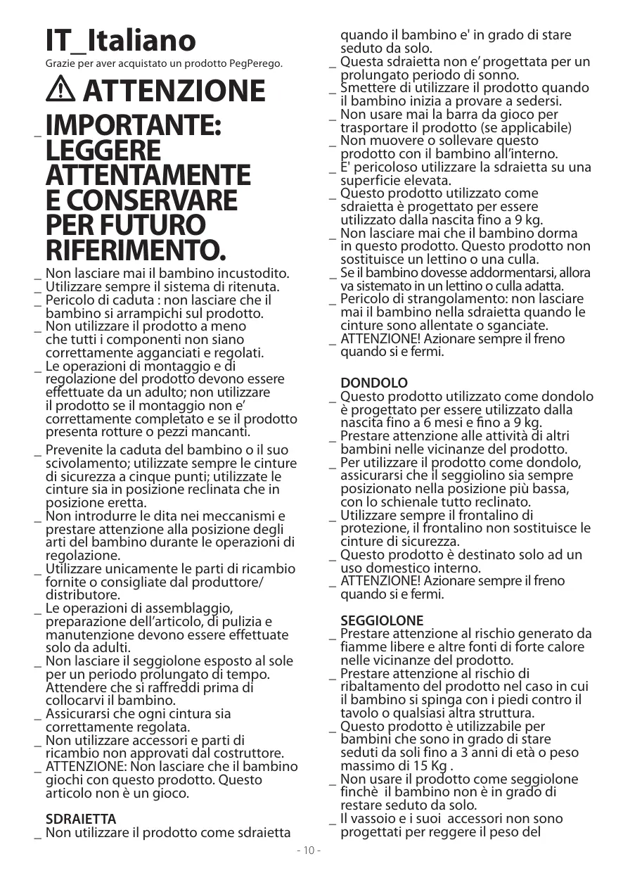 Scarica le istruzioni per il tuo Chaise haute in formato PDF gratuitamente! Trova il tuo manuale Tatamia follow me - PEG PEREGO e riprendi in mano il tuo dispositivo elettronico. In questa pagina sono pubblicati tutti i documenti necessari per l'utilizzo del tuo dispositivo. Tatamia follow me del marchio PEG PEREGO.