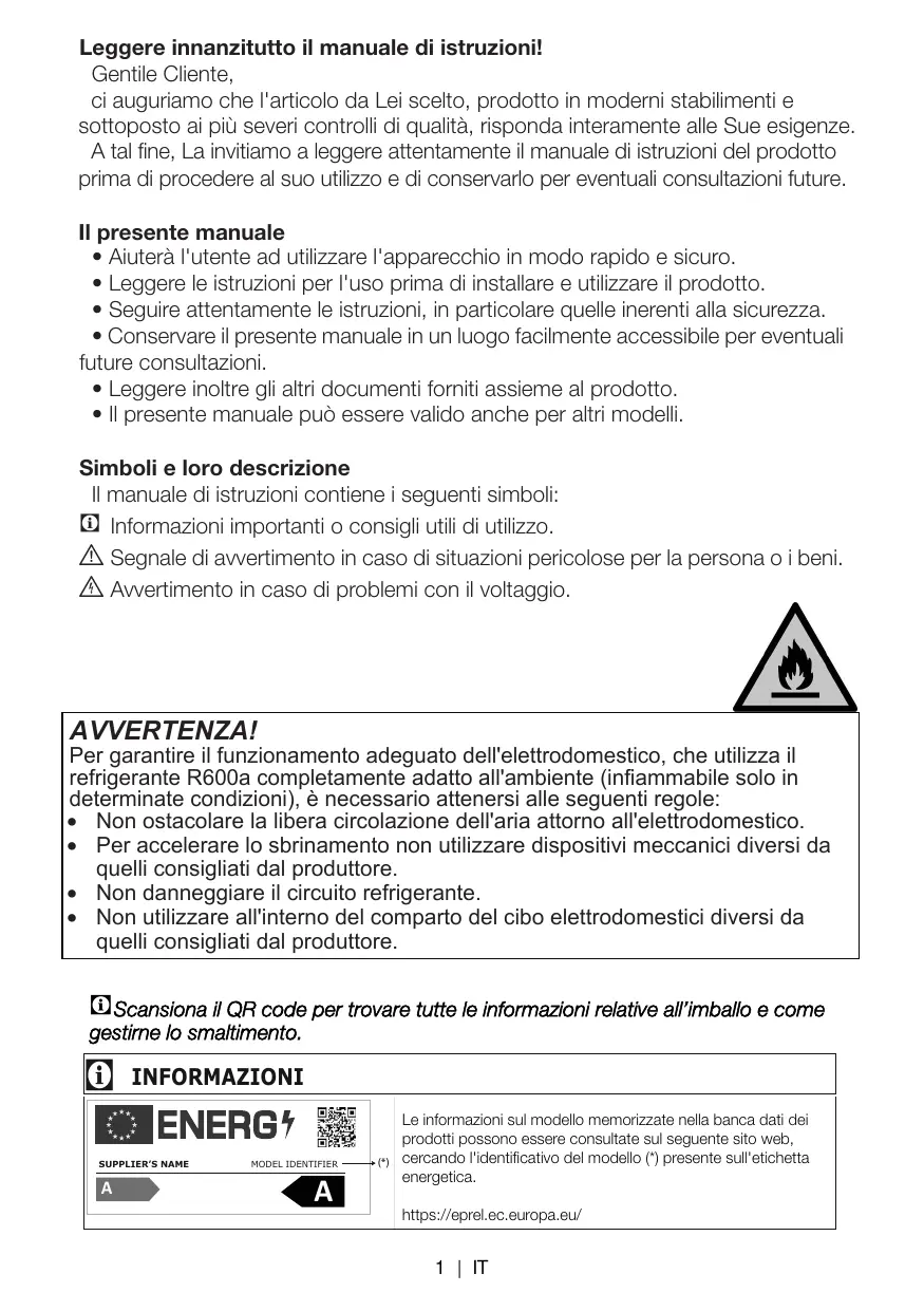 Le type de gaz utilisé dans l'appareil est mentionné sur la plaque signalétique située sur la paroi gauche de l'intérieur du réfrigérateur.