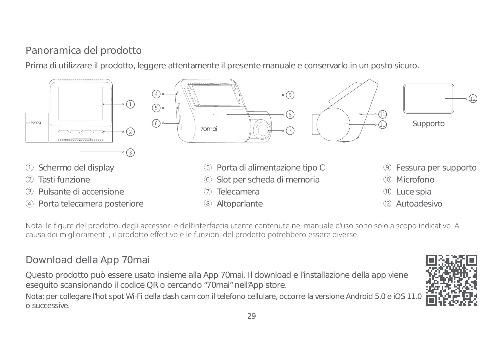 A510 - Dash Cam 70mai - Manuale utente e istruzioni gratuiti