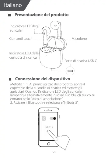 Scarica le istruzioni per il tuo Cuffie in formato PDF gratuitamente! Trova il tuo manuale HiBuds 5 - HiBuds e riprendi in mano il tuo dispositivo elettronico. In questa pagina sono pubblicati tutti i documenti necessari per l'utilizzo del tuo dispositivo. HiBuds 5 del marchio HiBuds.