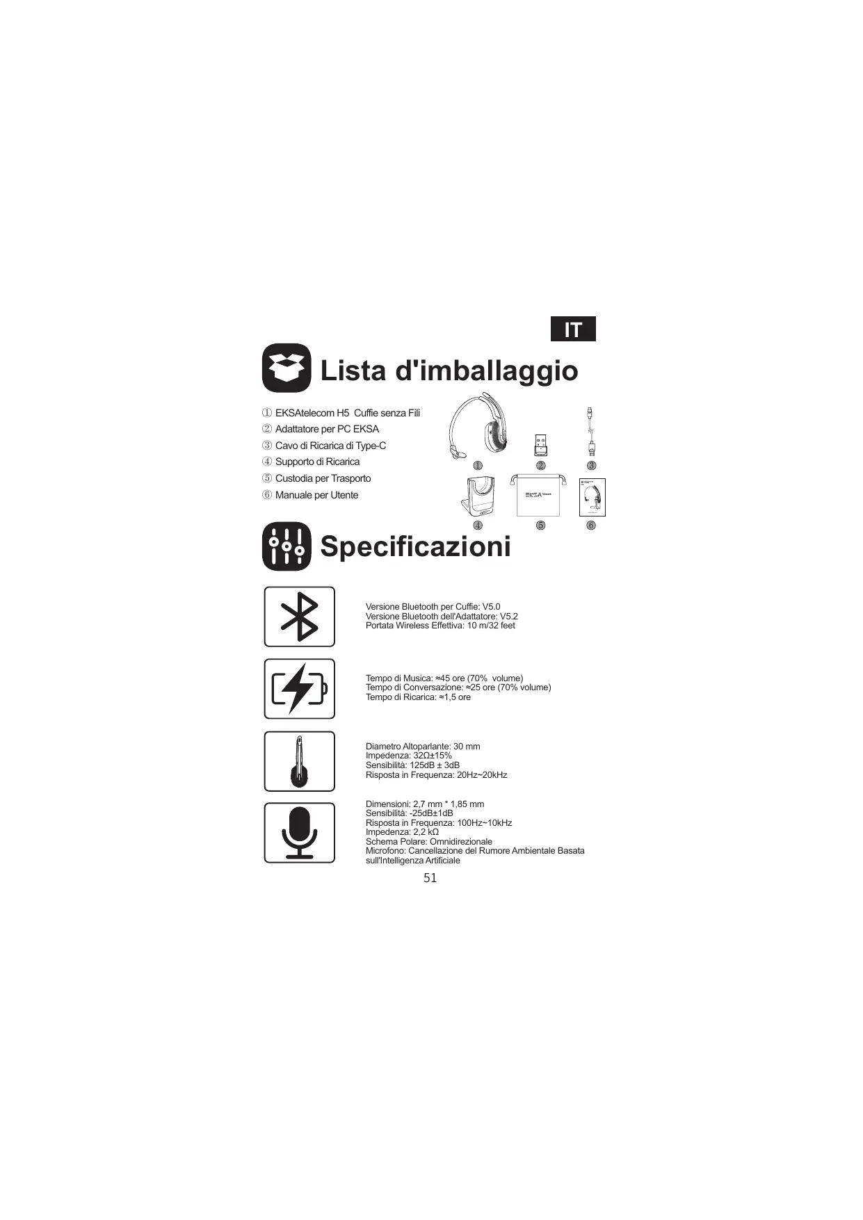 H5 - Cuffie EKSA - Manuale utente e istruzioni gratuiti