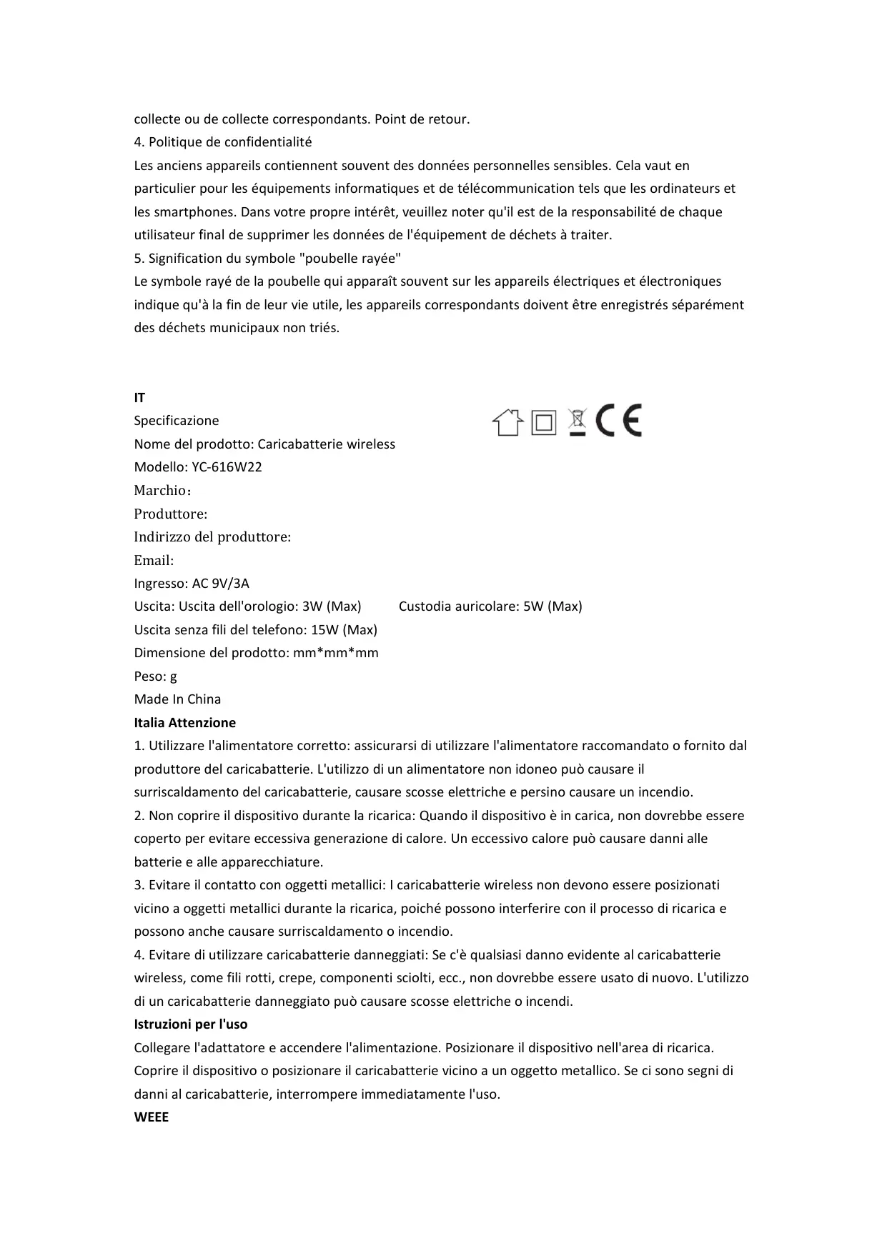 YC-616W22 - Caricatore wireless LUOATIP - Manuale utente e istruzioni gratuiti