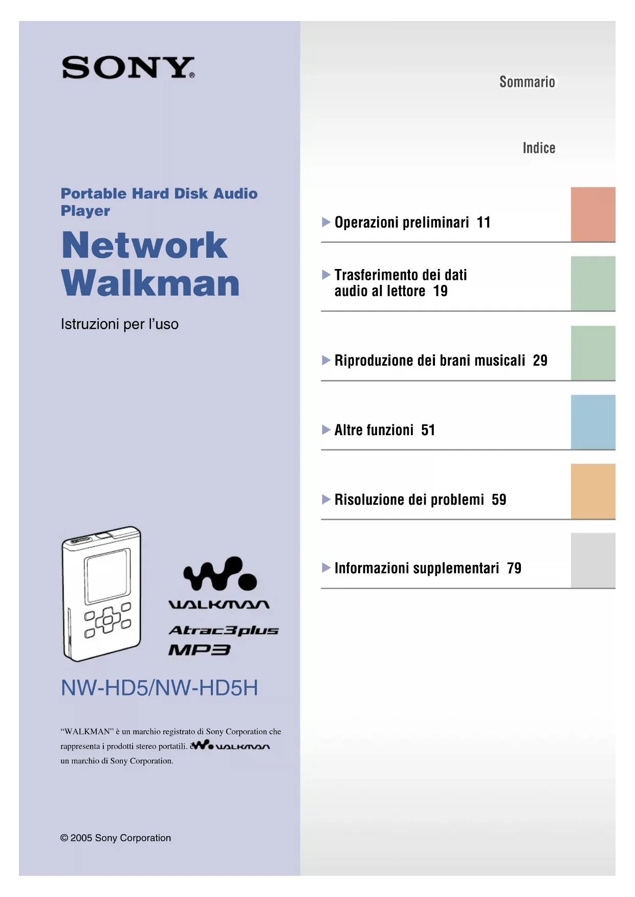 "WALKMAN" è un marchio registrato di Sony Corporation che rappresenta i prodotti stereo portatili. un marchio di Sony Corporation.