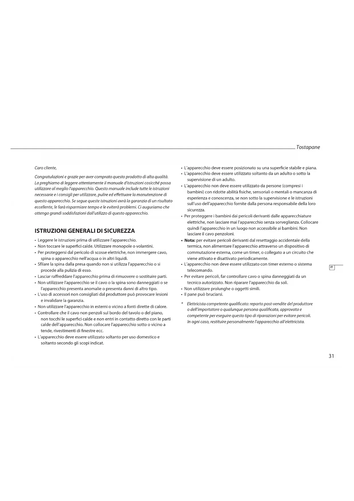 La preghiamo di leggere attentamente il manuale d’istruzioni cosicché possa