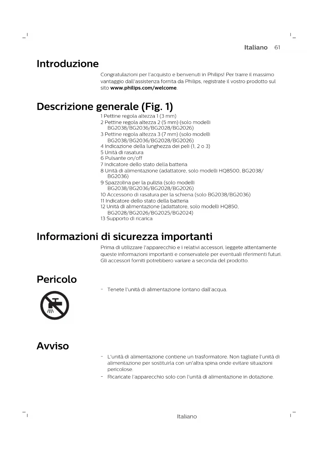 MANUALE UTENTE Bodygroom Series 3000 BG2024 PHILIPS