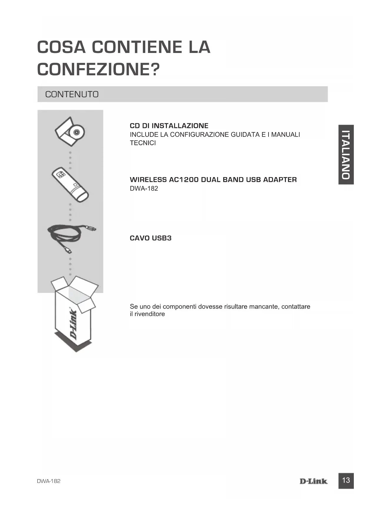 DWA-182 Se uno dei componenti dovesse risultare mancante, contattare il rivenditore