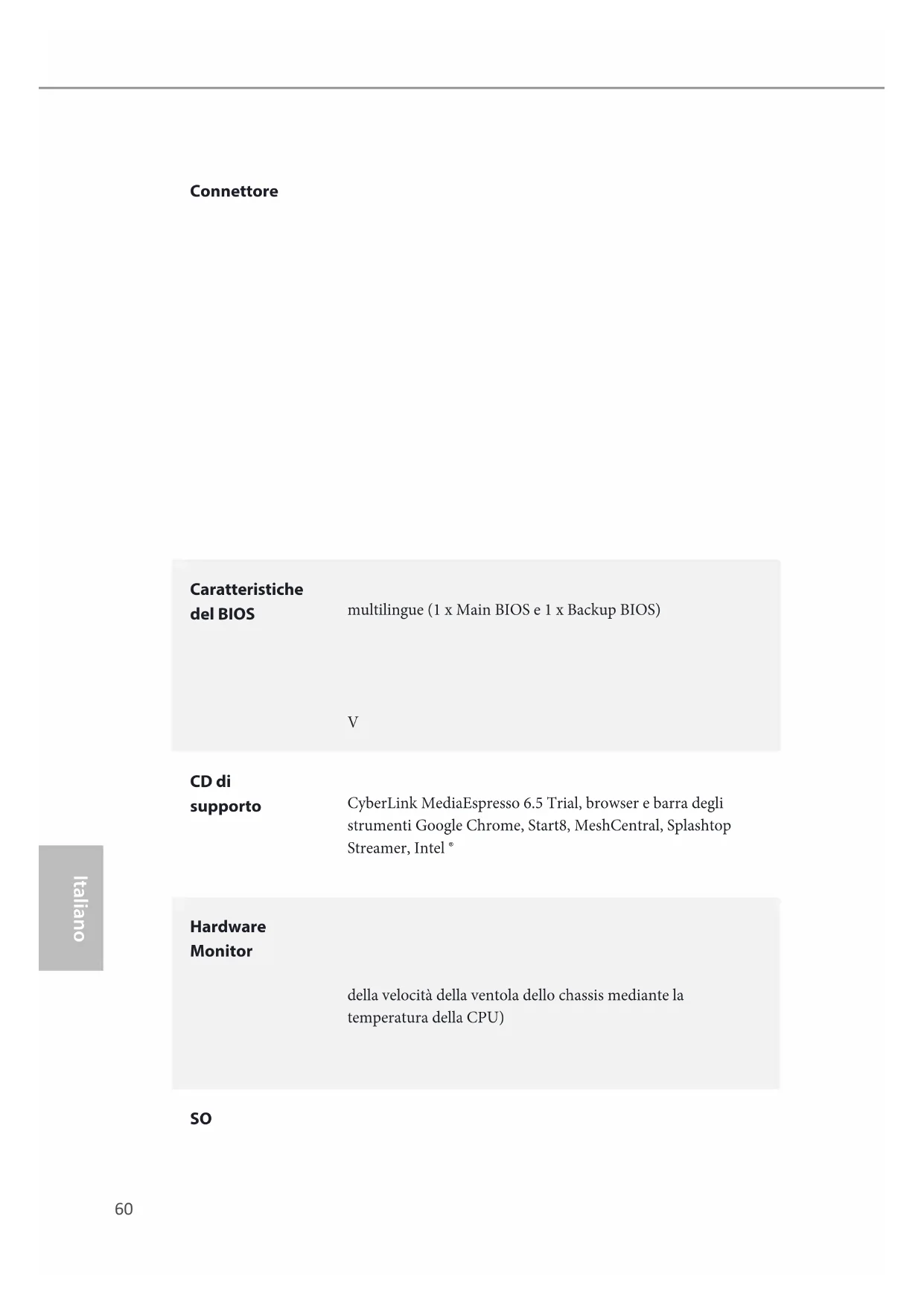 - 1 x connettore eSATA ASMedia ASM1061, supporta le funzioni NCQ, AHCI, funzioni "Hot Plug" e moltiplicatore di porte60 Italiano Connettore