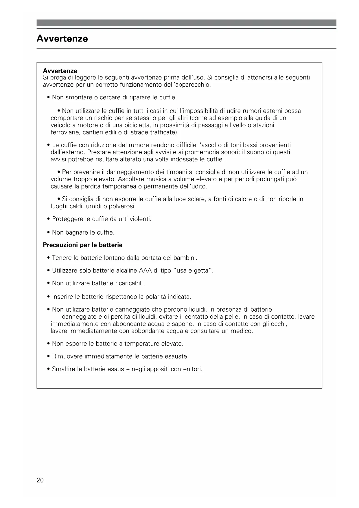 - Non bagnare le cuffie. Precauzioni per le batterie
