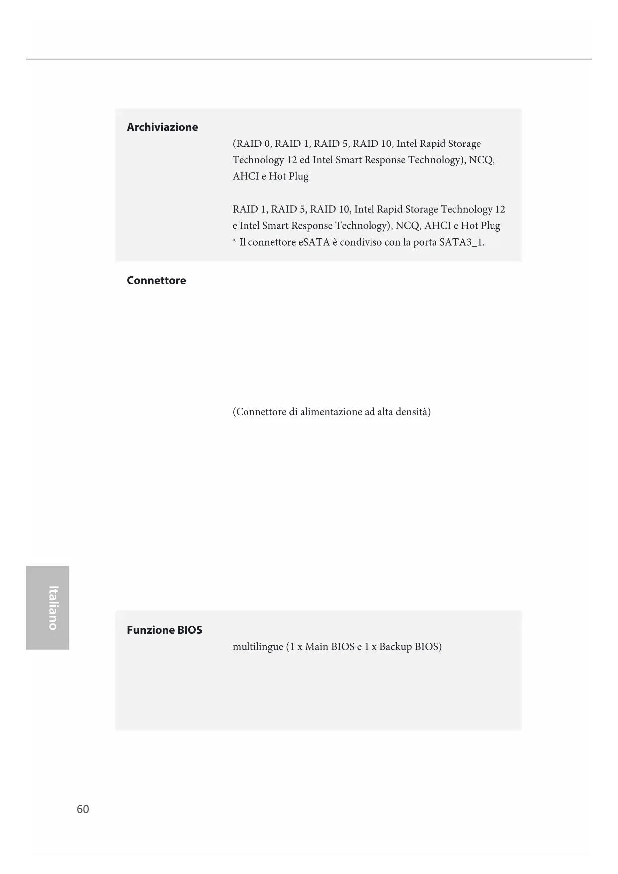 •6 connettori SATA3 6,0 Gb/s, con supporto funzioni RAID