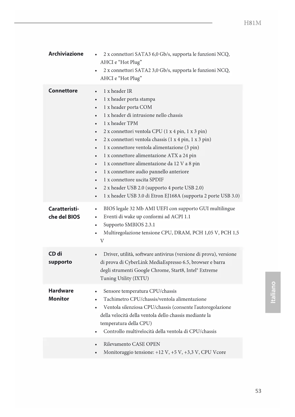 Scarica le istruzioni per il tuo Scheda madre in formato PDF gratuitamente! Trova il tuo manuale H81M - ASROCK e riprendi in mano il tuo dispositivo elettronico. In questa pagina sono pubblicati tutti i documenti necessari per l'utilizzo del tuo dispositivo. H81M del marchio ASROCK.