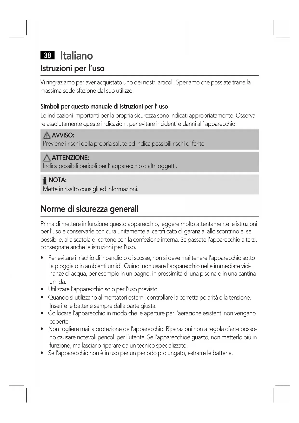 re assolutamente queste indicazioni, per evitare incidenti e danni all’ apparecchio: