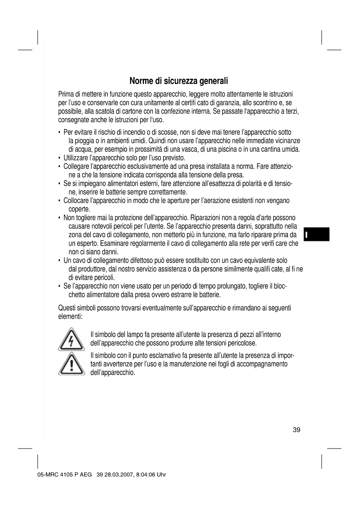 MANUALE UTENTE MRC 4105 P AEG