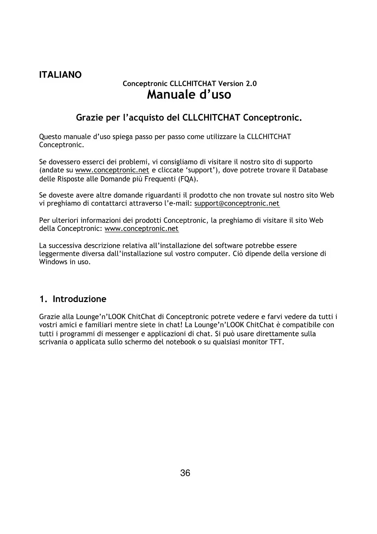 Se dovesto averere autre domande riguardanti il prodotto che non trovate sul nostro除去 Web vi preghiamo di contattarciattraverso l'e-mail: support@conceptronic.net