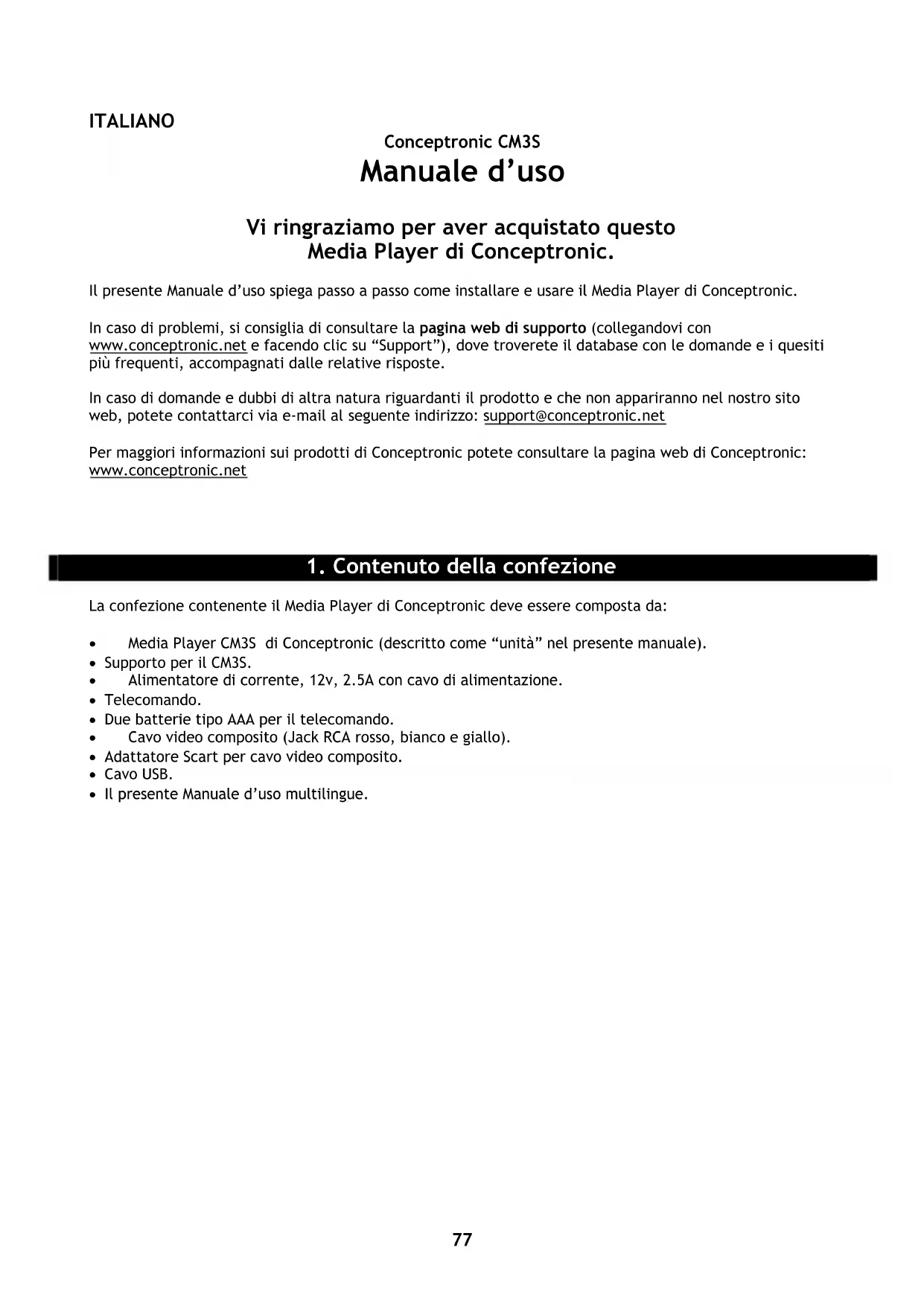 Il presente Manuale d'uso spiega passo a passo come installare e usare il Media Player di Conceptronic.