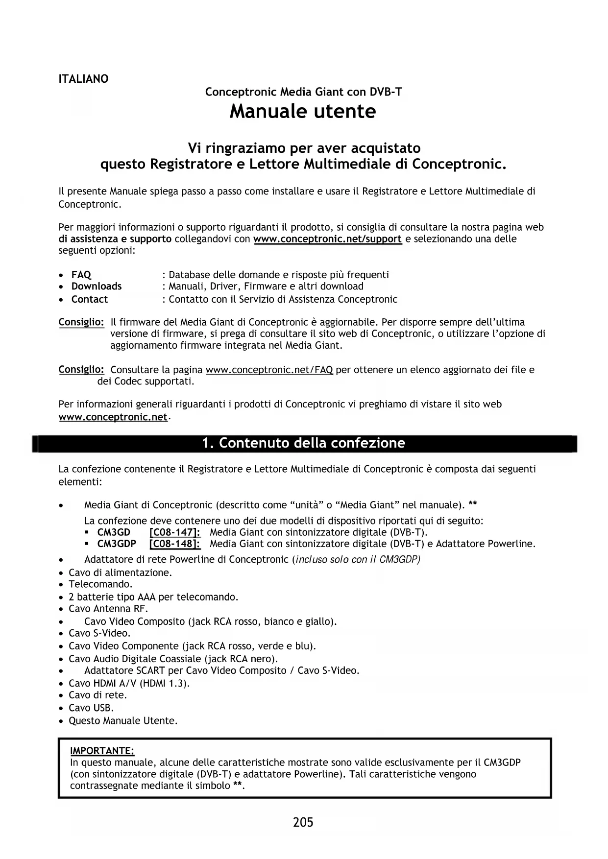 Media Giant met DVBT - Lettore multimediale CONCEPTRONIC - Manuale utente e istruzioni gratuiti
