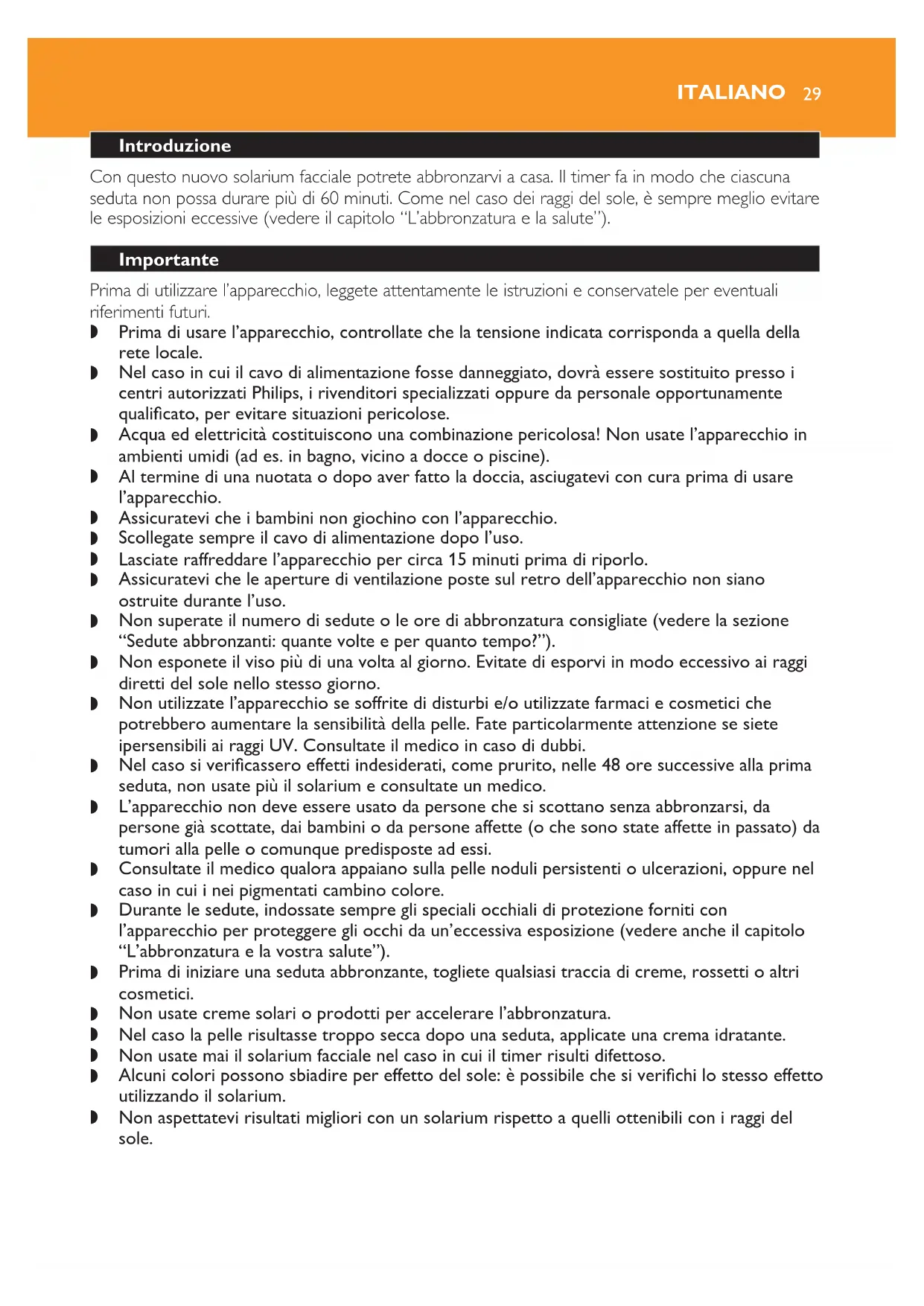 ITALIANO30Nota:Per un’abbronzatura dorata e uniforme, ruotate leggermente il viso a destra e sinistra durante la