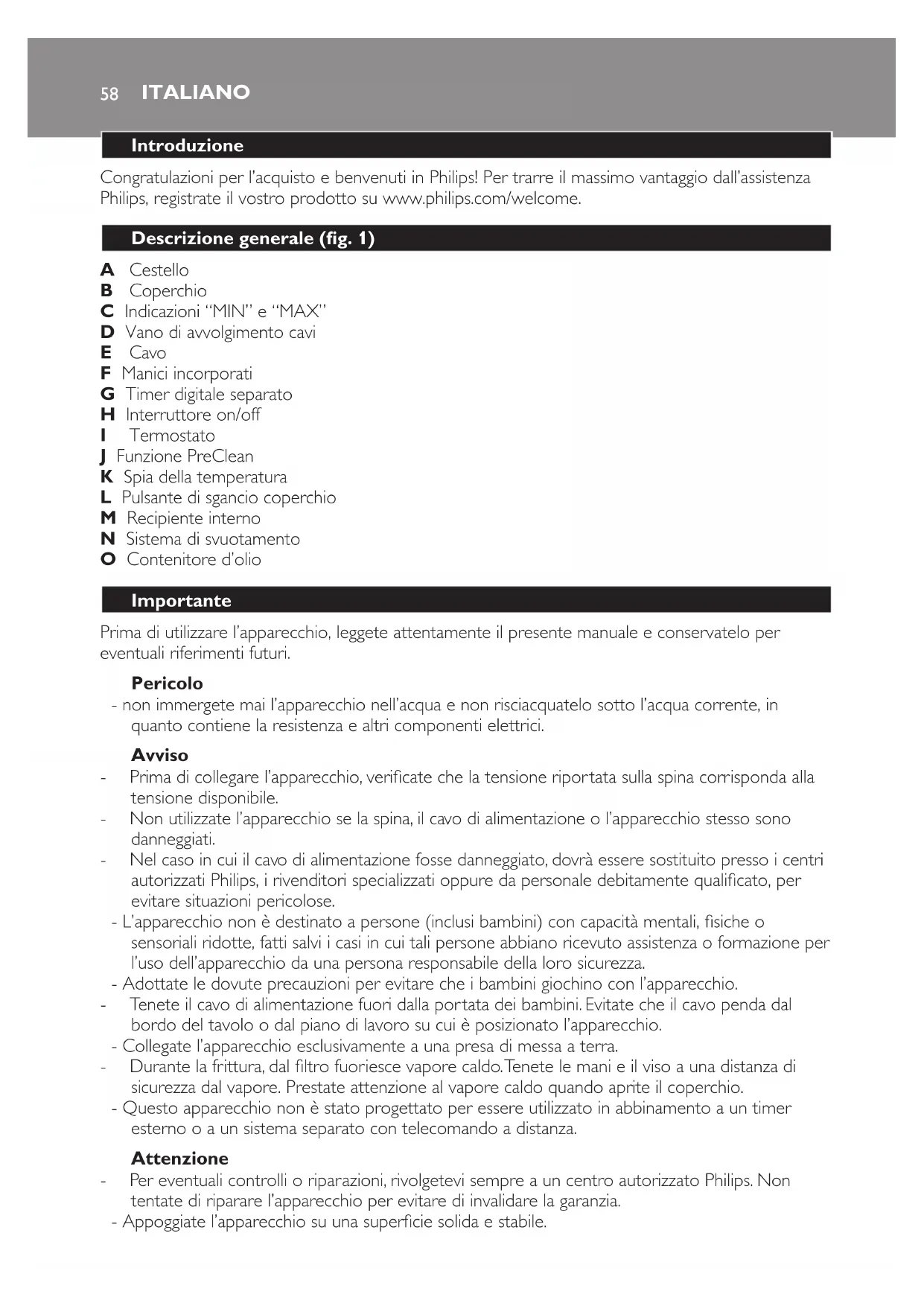 - Non utilizzate l’apparecchio per friggere torte di riso (o simili) onde evitare eccessivi schizzi di