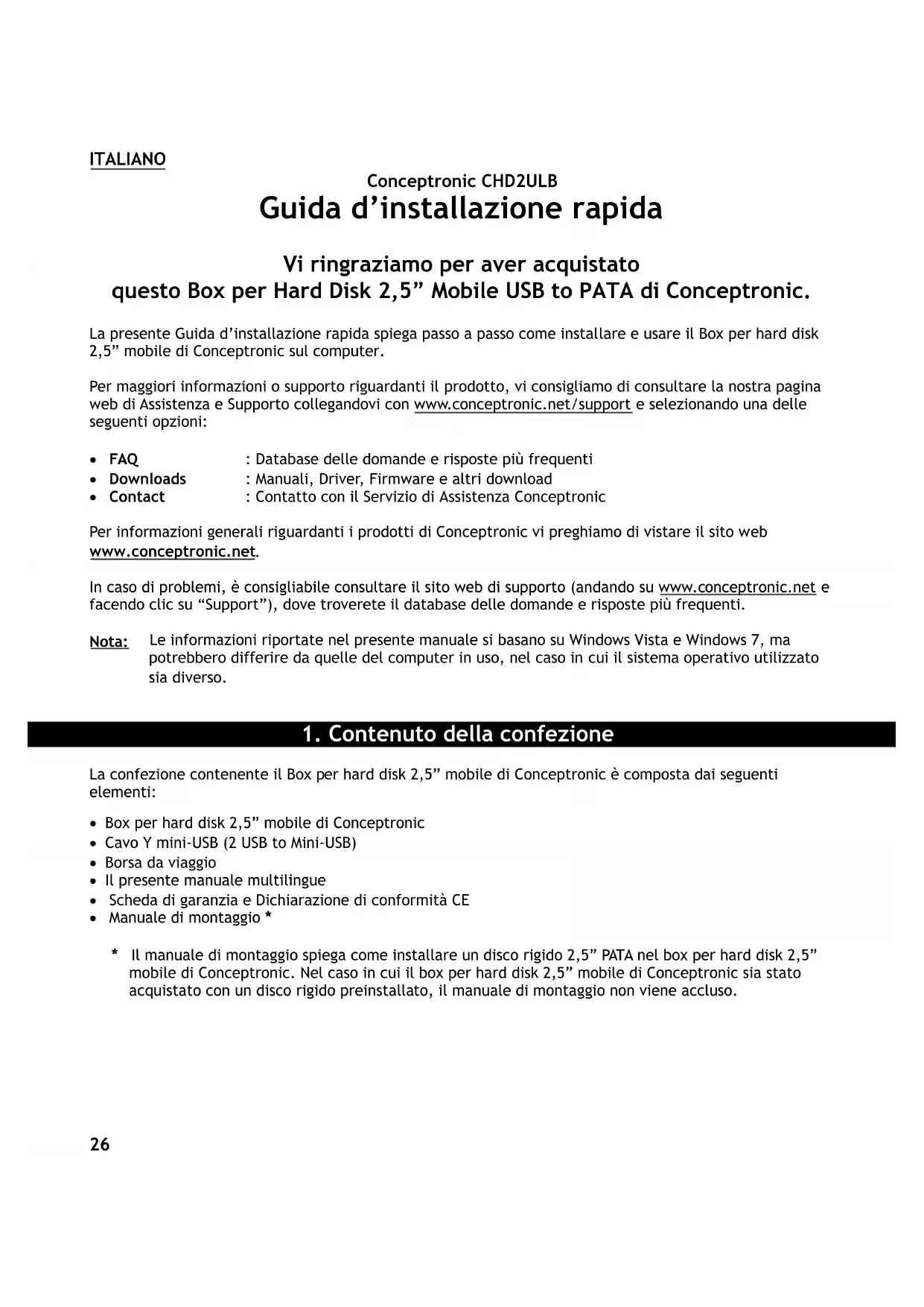 La confezione contenente il Box per hard disk 2,5” mobile di Conceptronic è composta dai seguenti