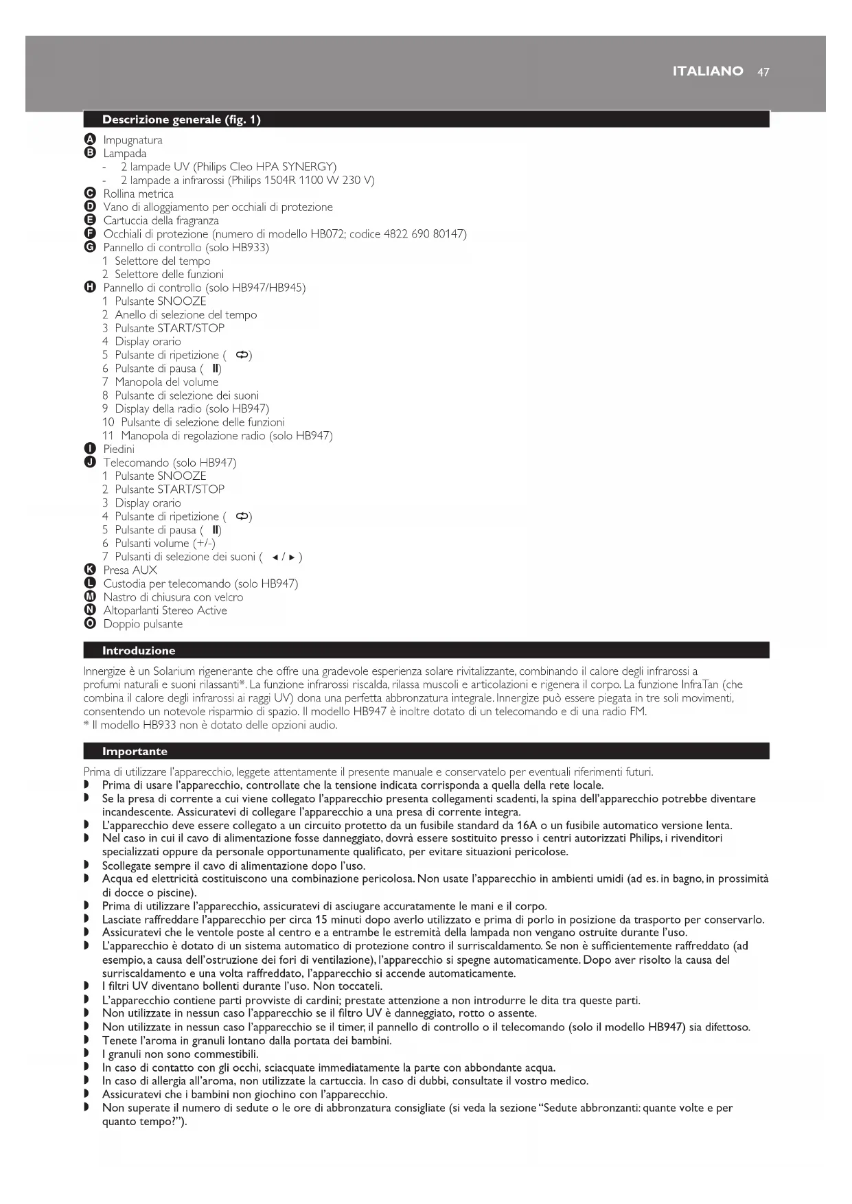 Scarica le istruzioni per il tuo Banc solaire in formato PDF gratuitamente! Trova il tuo manuale Innergize HB947 - PHILIPS e riprendi in mano il tuo dispositivo elettronico. In questa pagina sono pubblicati tutti i documenti necessari per l'utilizzo del tuo dispositivo. Innergize HB947 del marchio PHILIPS.